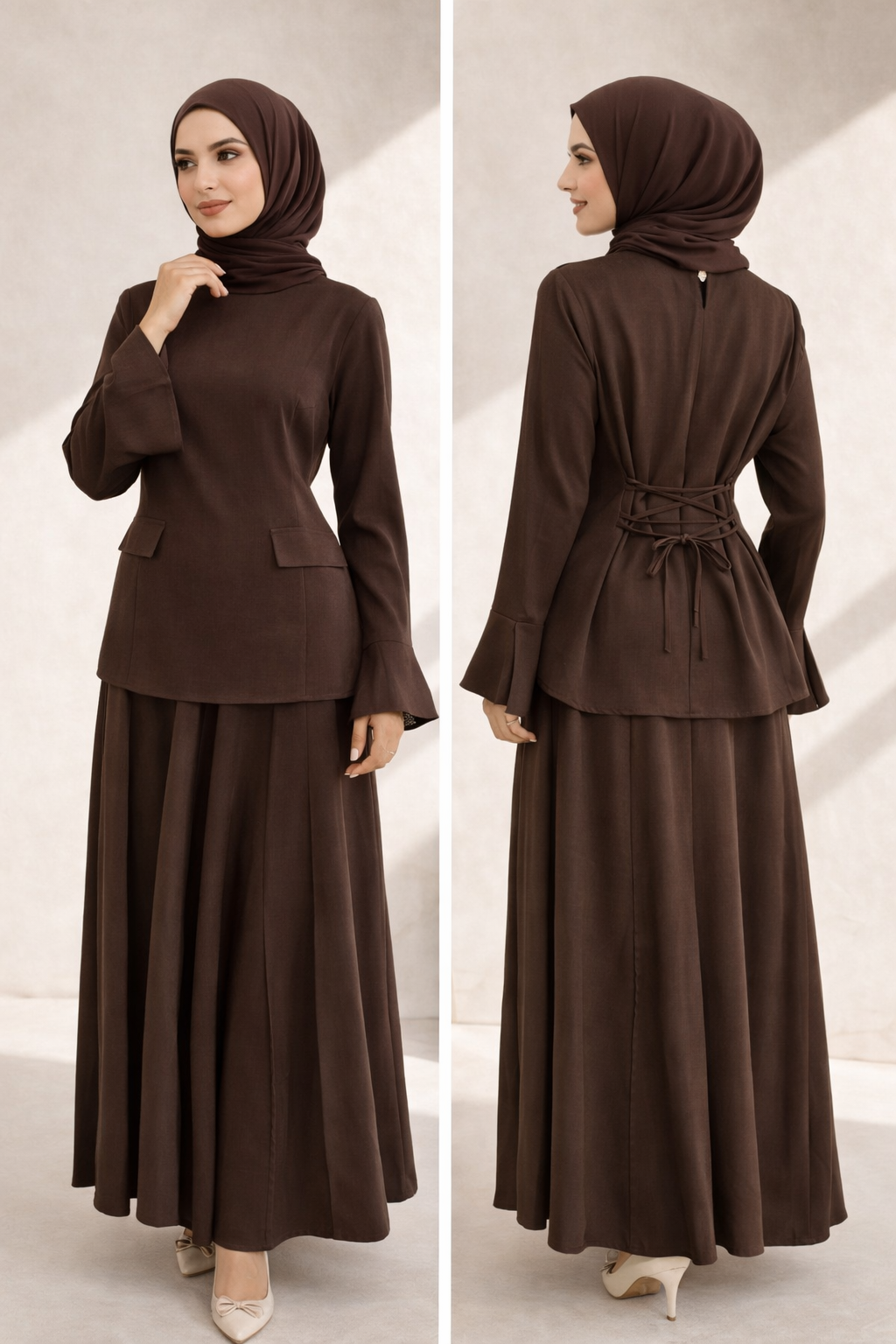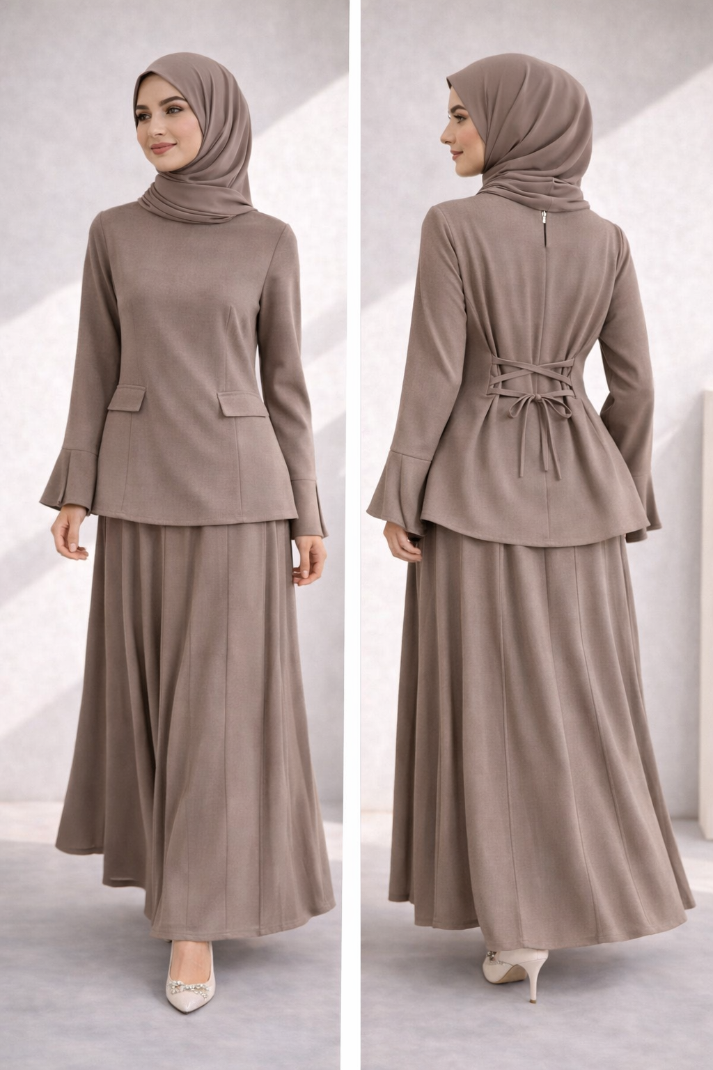 Elegantes 2-Teiler Set mit Rock – fließender Fall & Taillenbindung